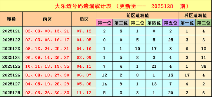 后差异析:上期后区开出号码11、12,为大大奇偶组合。