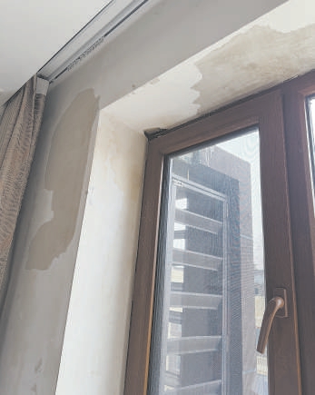 住在顶层的住户赵女士是2023年收房的业主。“那时就漏,如今两年了,险些统共房间皆漏了一遍,定制的产物皆被泡了,还要重新作念。”为此,赵女士一直未能入住新家。由于墙面贴着墙纸,最先租住在顶层的刘女士并未钟情墙纸上透出的陈迹,直到她发现墙纸上的陈迹越来越显著,一问邻居才得知可能是墙面渗水。她马上撕开墙纸,发现整面墙险些长满了霉斑,“我再也没敢在那间房子里休眠。最近房子到期,我马上搬走了。”住户李女士有同样的惦记。记者来到李女士家,发现客厅和主卧窗户旁有大面积墙皮零散,霉斑和渗漏陈迹显著。她告诉记者,本年物业如故4次上门维修了,可修完依然漏。