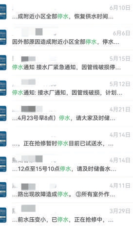“那寰球班回家,念念洗个滚水澡休息一下,到家却发现莫得水。一直比及深夜两点才来水。”住户王先生说,小区停水相配频繁,平均每周皆要停一两次。巧合停水前会收到见告,但巧合也会毫无预兆地停水,天然会配备济急水车和洁白水,可这只可解燃眉之急,无法管制频繁停水给住户生涯带来的困扰。