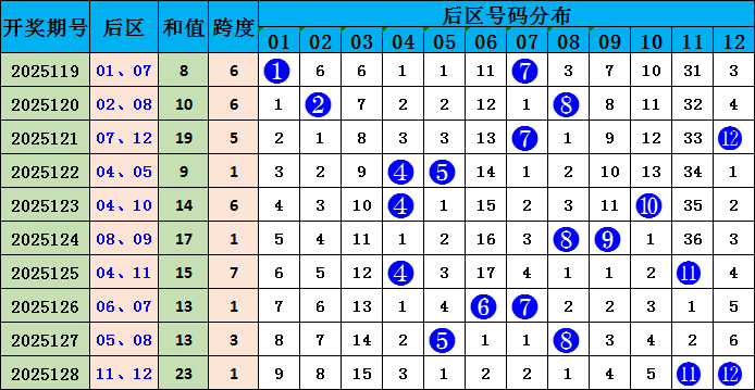 后差别析:大乐透后区上期开阑珊偶组合,跨度1。近10期后区奇偶组合出现3期,偶奇组合出现4期,奇奇组合出现1期,偶偶组合出现2期;近10期后区两码跨度1-5开出6次,6-11开出4次,本期后区两码概括推选:04、09。