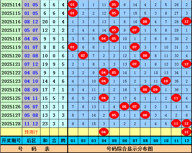 后离别析:上期后区开出奖号11、12,为全大、一奇一偶组合。