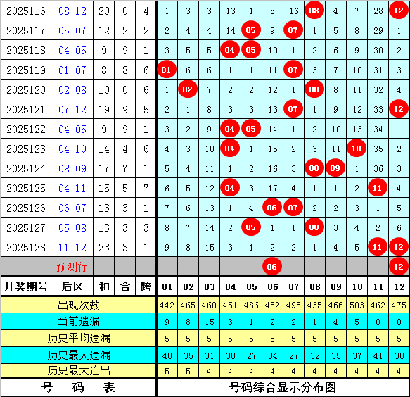 和值跨度:上期和值开出98,对比第2025127期和值飞腾了13个点位,本期看好和值走小,羡慕小 号区域和值,展望在87近邻。