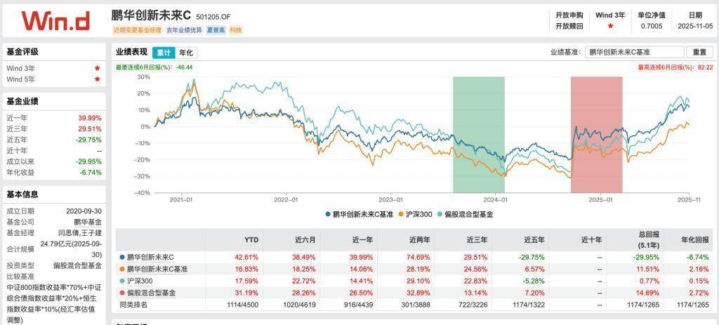 其中,鹏华革命改日为闫念念倩和王子建共同处治的居品,截止11月5日,鹏华革命改日C的年内收益率达42.61%。而王子建单并立治的另一只居品——鹏华远见精选A的年内功绩为65.24%。